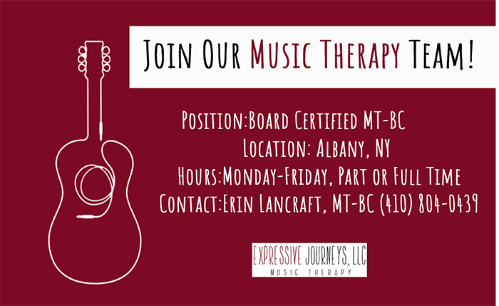 Expressive Journeys LLC serves Schenectady, Albany & Troy, NY and the following counties: Albany, Schenectady, Saratoga, Rensselaer, Schoharie, Warren, and Fulton. We are a trusted resource for Music Therapy working in School Districts, group homes, in-home visits, day habilitation facilities, assisted living facilities and for clients and students at our Creative Arts Clinic. Our staff at Expressive Journeys use music to address the physical, emotional, cognitive and social needs of individuals. Our staff offer a range of services for clients from birth to end of life. We are a trusted source for Music Therapy.